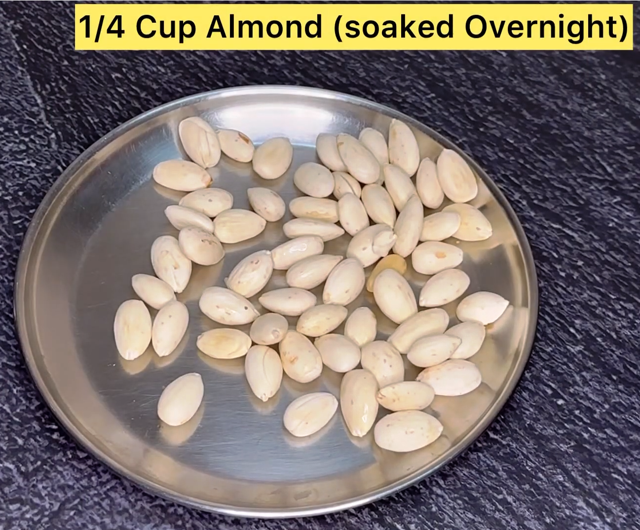 To make Badam shake, soak 1/4 cup of almonds in the water overnight.