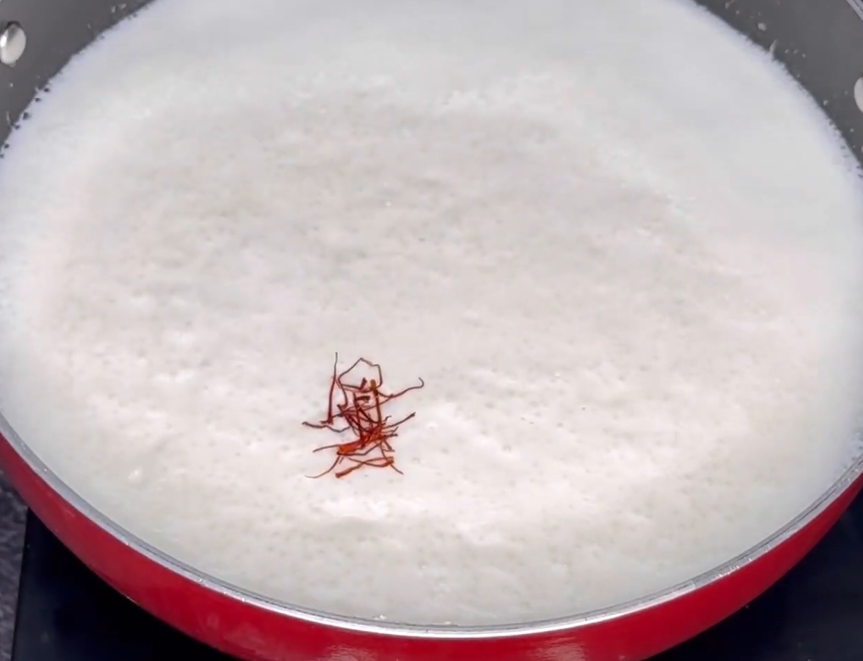 6. After 1 boil, add 1/4 tsp saffron. Mix well.
