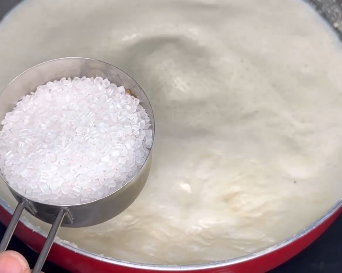 5. Boil 6 cups of milk in a kadai at high flame. Wait until 1 boils.