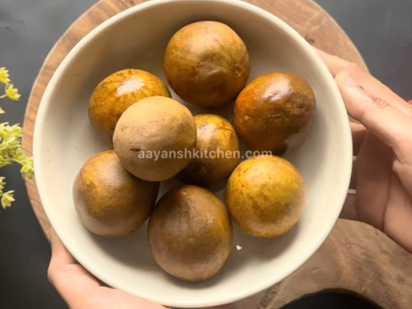 • Here, I’m using eight well-ripened sweet chikoos. First, we will wash them thoroughly, then cut them in half from the middle.