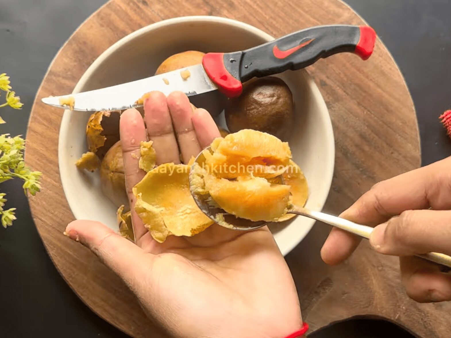 • Extract the pulp using a spoon, which is very easy to do.