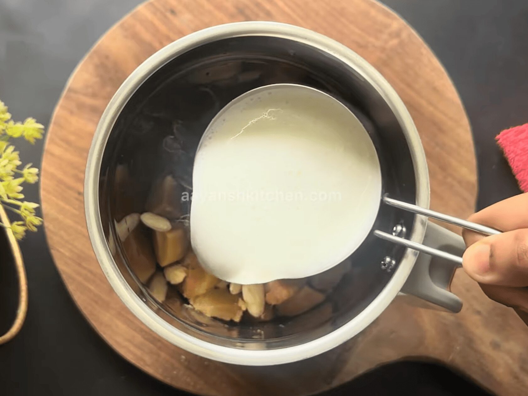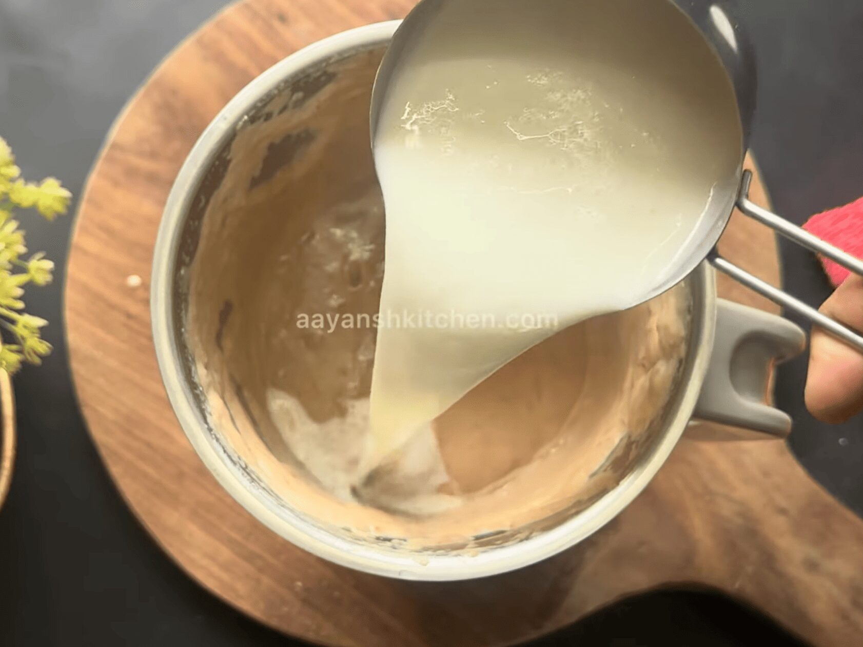 • Initially, add one cup of boiled and cooled milk.