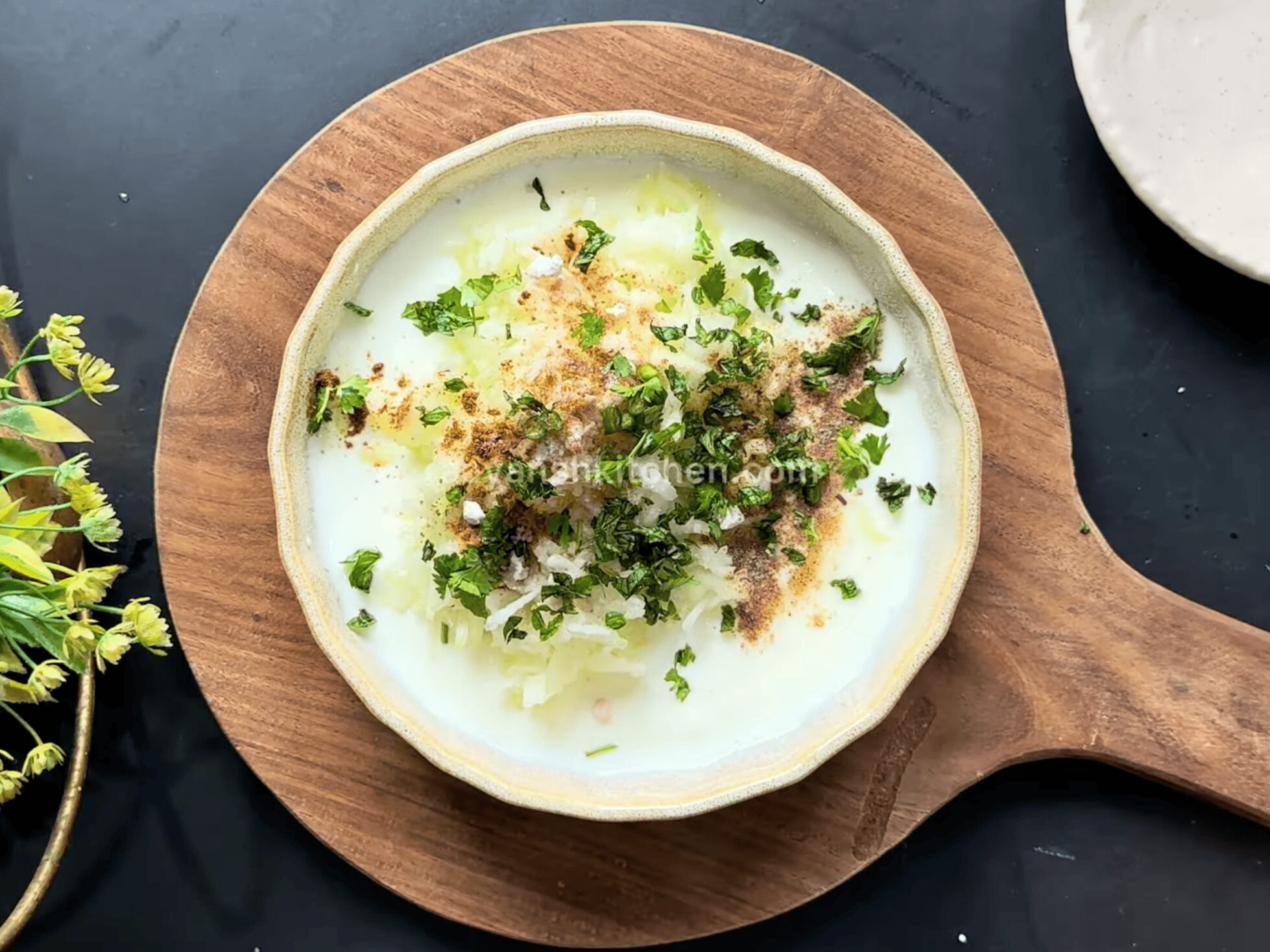 • The flavorful Cucumber Raita is ready now.