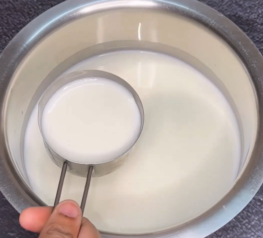 - Take 1 liter of milk in a pot, take 1/2 cup milk out of it for now and keep the milk pot aside.