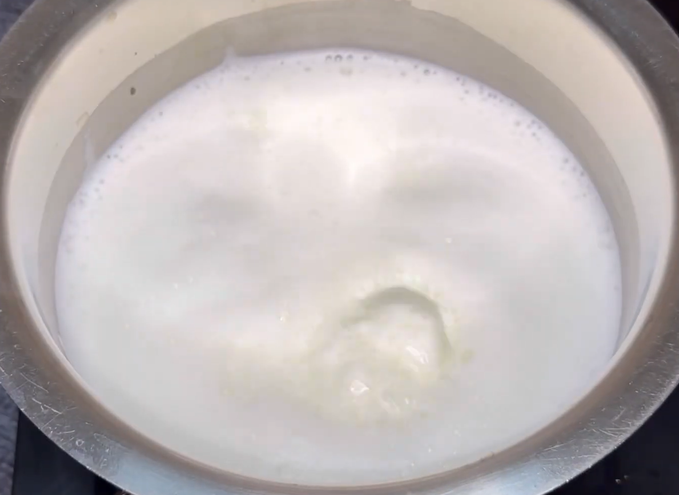 4. Take the milk pot and boil the milk on a high flame. After 1 boil, turn the flame to medium.