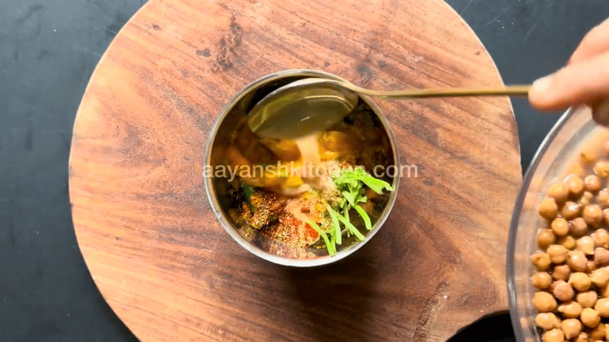 - As the water dries out almost completely, we will add a few more spices such as 1 tsp Jeera Powder, 1 tsp Black Salt, 1 tsp Amchur Powder, 1/2 tsp Kali Mirch Powder, 1/2 tsp Garam Masala, finely chopped Green coriander leaves, and hand-crushed Kasuri Methi. Mix well.