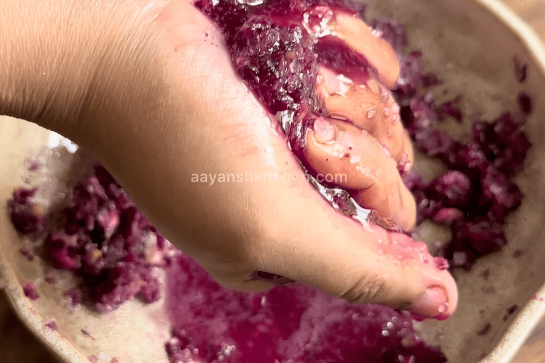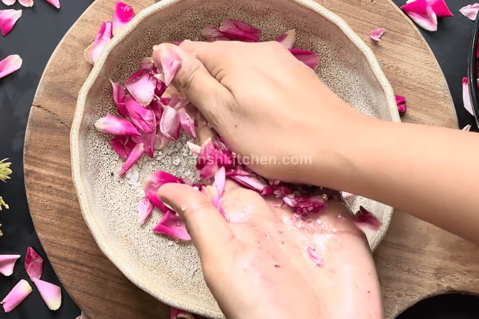 3. After mashing all the Rose petals, check them by squeezing them in your hands; the juice will come out nicely.
