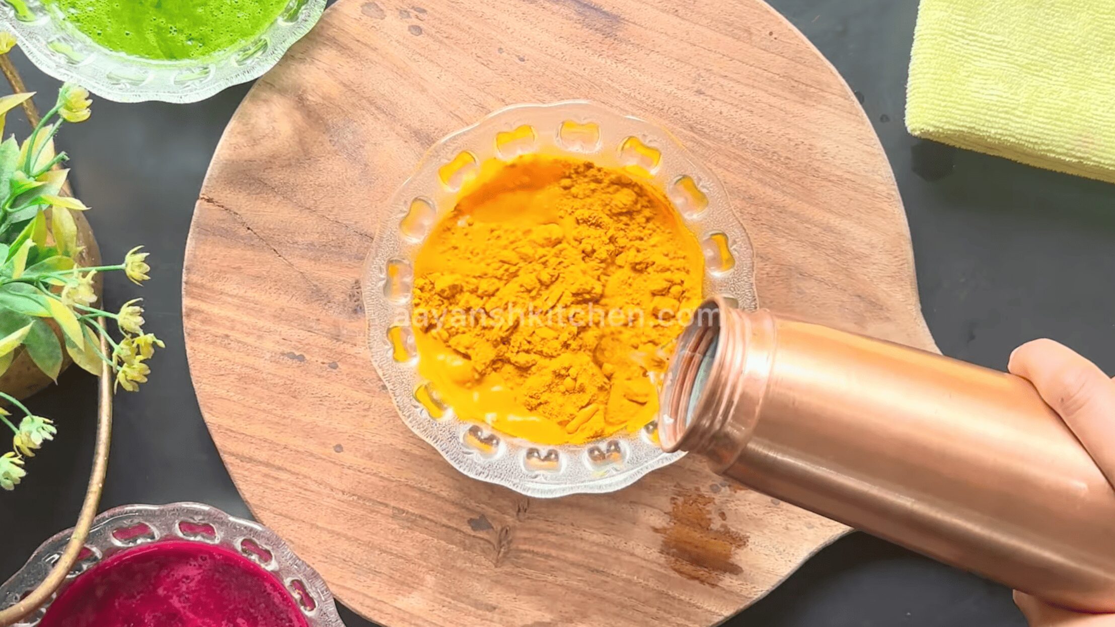 8. Take 1/2 cup of Turmeric powder and place it in a bowl. Add a little bit of water.