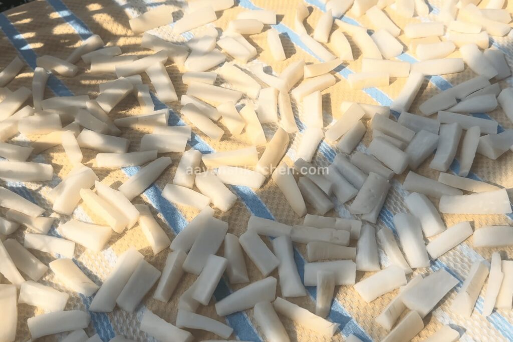- Cut the radishes into any preferred shape that you like. You can either cut them into long strips or round shapes. Now, place them on a cloth and let them dry slightly.