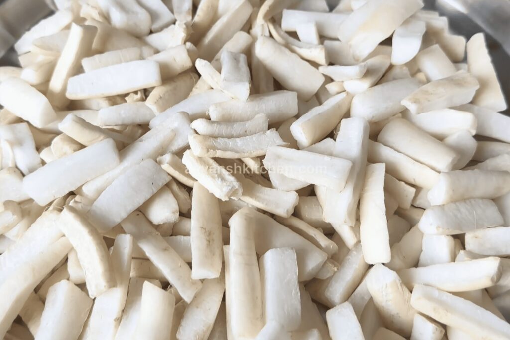 - Do not over-dry them, as keeping the radish slightly moist ensures the correct and fresh texture for the pickle, and also maintains the necessary crunch. If we dry them too much, it would change their natural crunch and freshness. Once they get dry, take them in a plate.