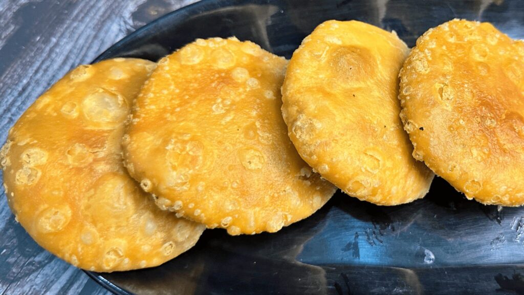 16. Fry the kachoris until they become crisp and change color to golden brown.