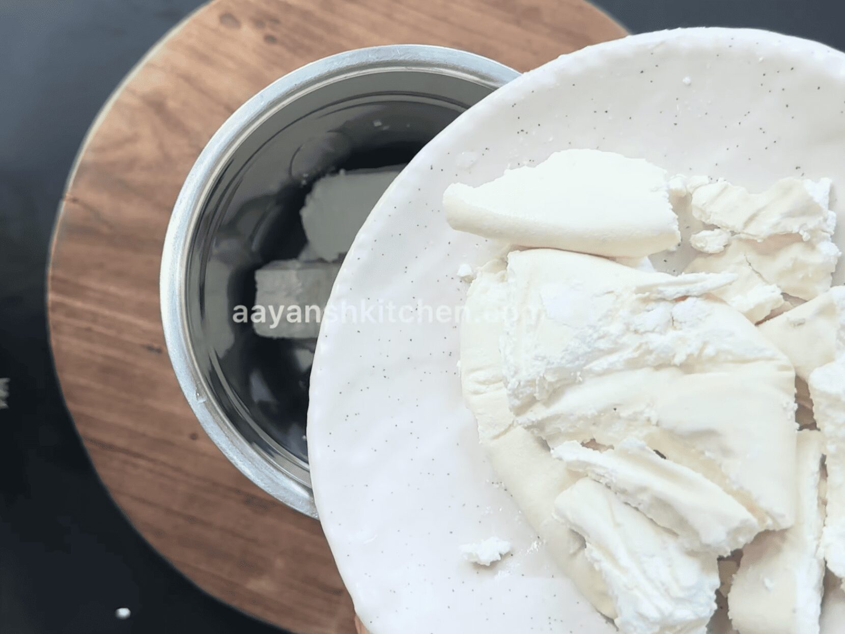 1. Add 200 gm of Paneer into a blender. I’m using Homemade Paneer, the recipe of which is already uploaded on my blog.