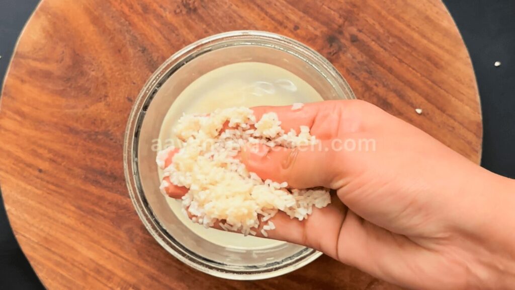 1. To make Rice Kheer, we will take 3 tbsp of Rice. This is fine and small-sized rice. Wash it 3-4 times and then soak it in water, leave it aside for half an hour. The rice will slightly swell up to increase in size and quantity.