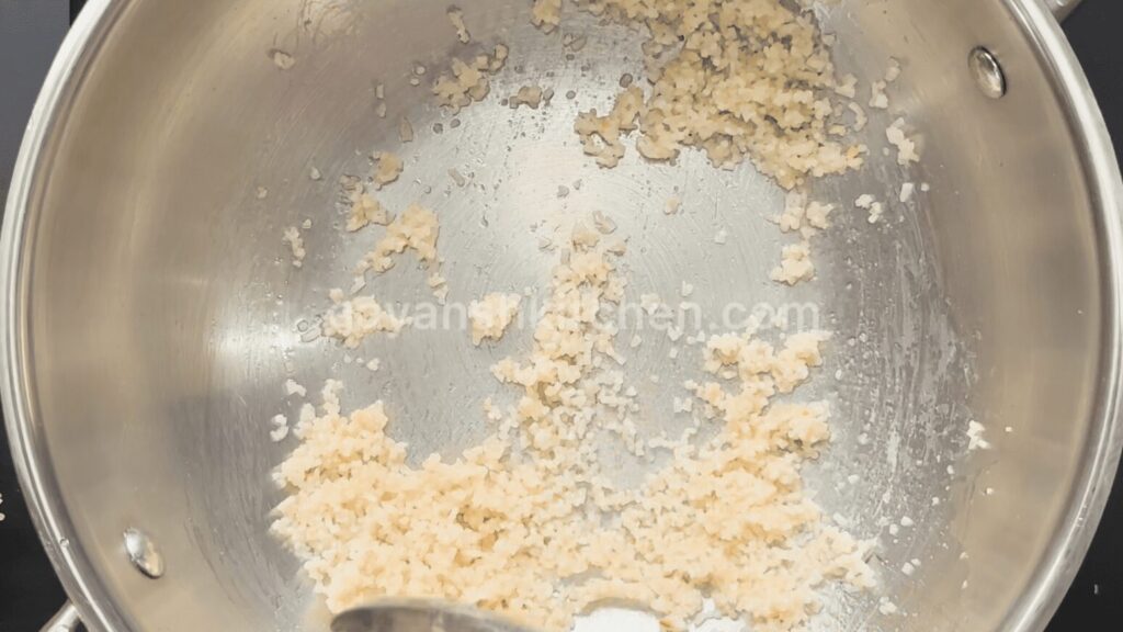5. Now, add the rice that we pounded and roast it with the leftover ghee for 15-20 seconds.