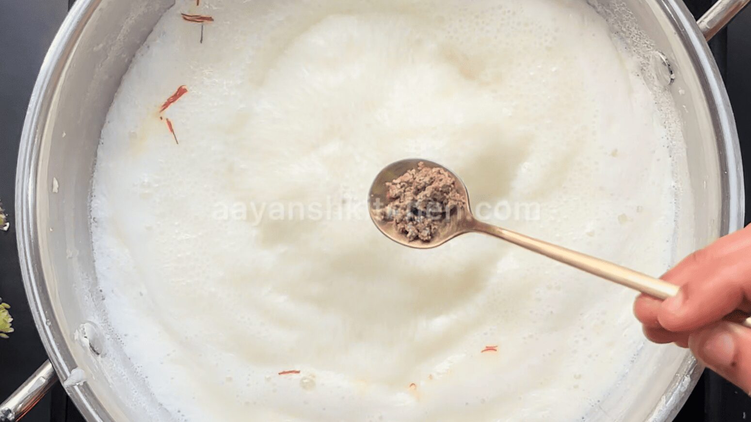 - Turn off the flame once it gets thicker. Let the kheer cool down on room temperature.