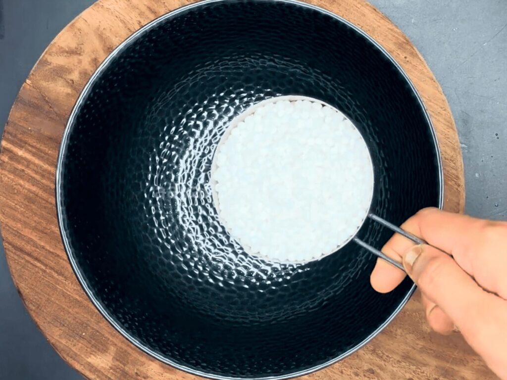 3. After washing the Sabudana, add 3/4 cup of water to the bowl. Keep in mind that the quantity of Sabudana was 1 cup, while the water should be 3/4 cup. If you don’t have a measuring cup, remember to soak the Sabudana in water; the water should cover the upper layer of Sabudana in the bowl. There should not be more water than that.