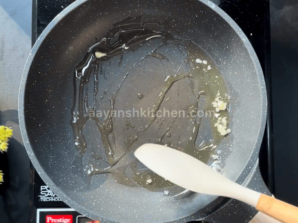 7. In the same Pan, take 2 tbsp of Desi Ghee, 1 tsp Jeera, and 1 medium-sized chopped Sweet Potato.
