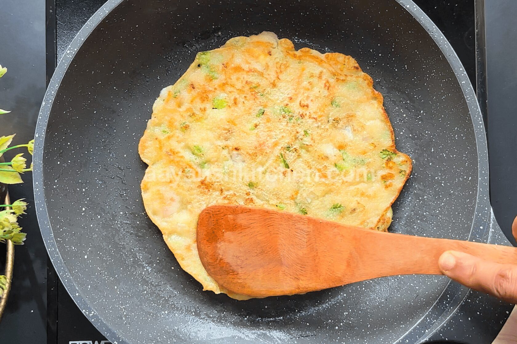 13. As it cooks and dries out, flip it to the other side. You can see, it has a really nice color. Press gently to roast the other side as well.