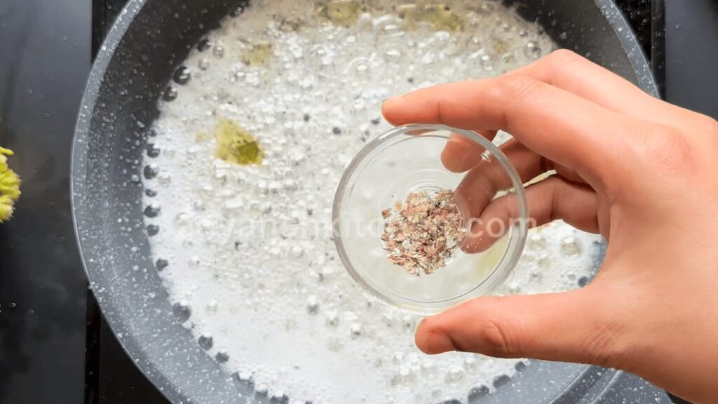 - Wait until the mixture turns white and bubbly. At this stage, we will add a tbsp of Desi Ghee.