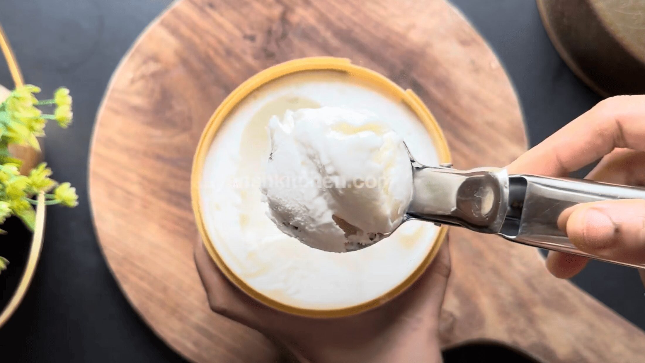- Add 4 scoops of Vanilla ice cream to the jar. This is homemade Vanilla Ice cream that you can easily make at home, rather than using a market-based alternative.