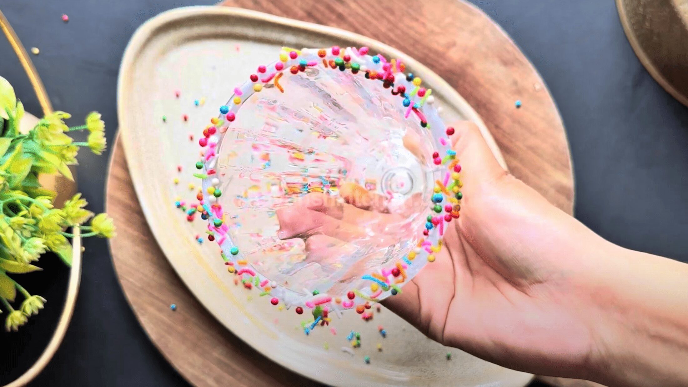 7. Dip the glass in a plate containing the colorful sprinkler, and it will make the drink even more tempting.