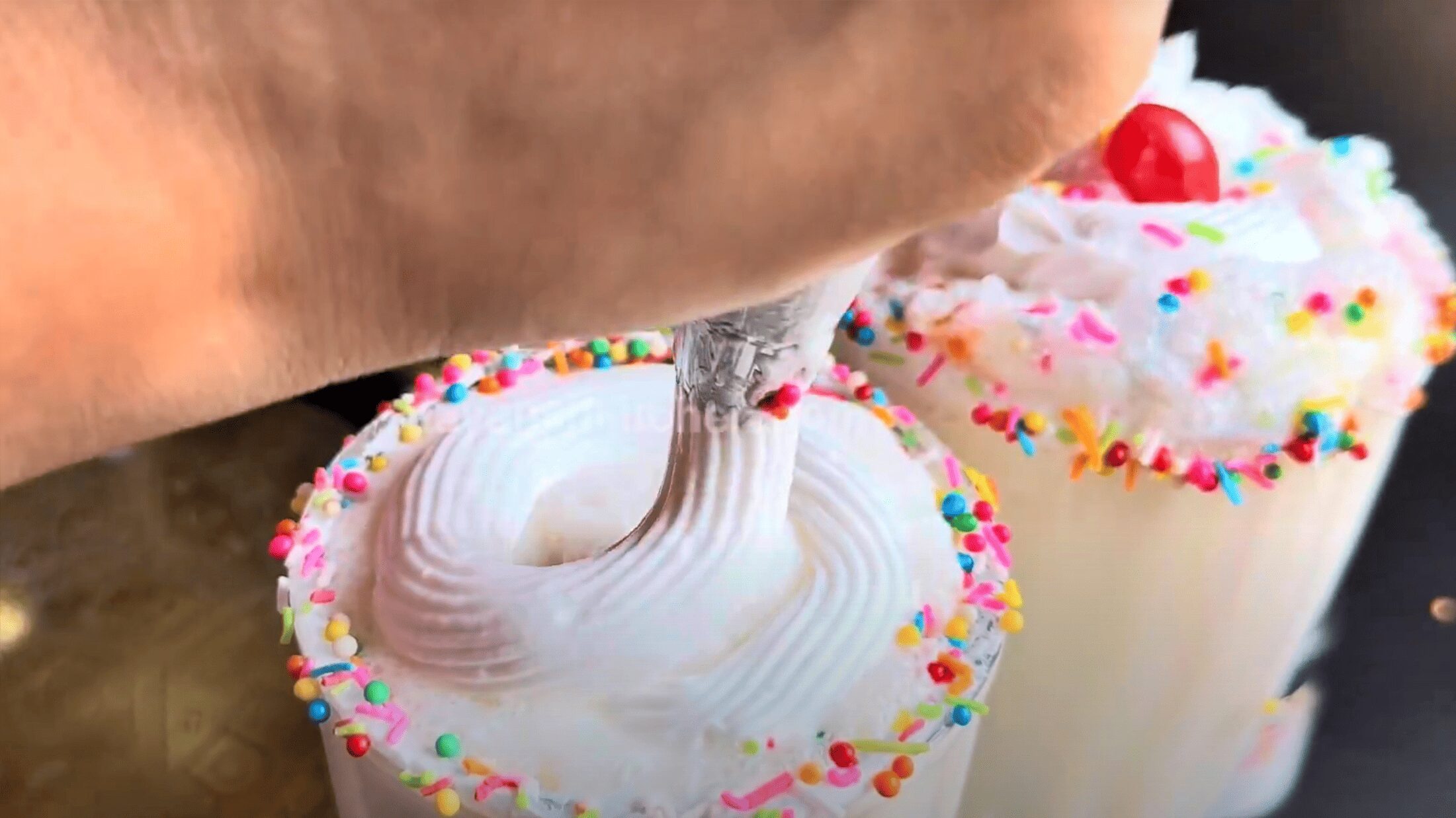 10. Garnish with colorful sprinklers and cherries. You can also use vanilla ice cream and add some chocolate syrup or caramel to your taste. You can also use other toppings such as chopped nuts like pistachios and almonds.